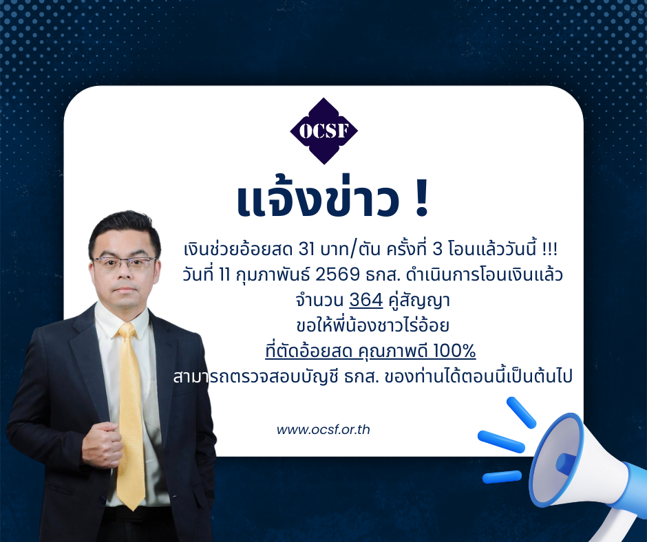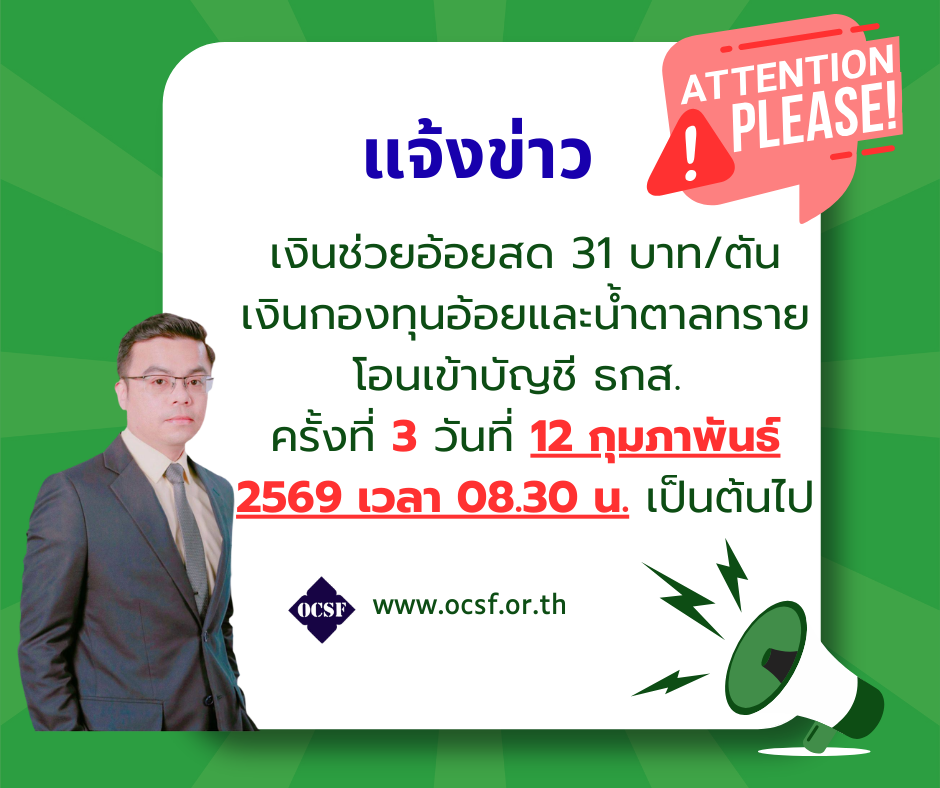 เงินช่วยอ้อยสด 31 บาท/ตัน ครั้งที่ 1 วันที่ 27 พฤศจิกายน 2568